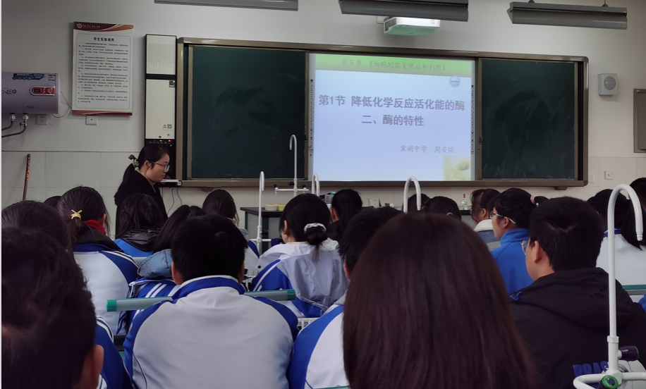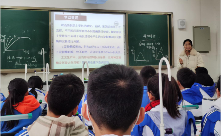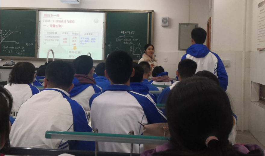 本次教研活动上,棠湖中学高一年级的刘亭、周安琪两位年轻教师为全区生物学教师一起研究“指向高中生物学大概念的‘教学评一致性’实践研究”提供了《酶的特性》同课异构研讨课例。刘亭老师的课以“酶的特性”为知识核心,通过连贯的情境设计激发学生的学习热情,将生物学问题与日常生活相结合;学生以小组合作形式进行实验探究,在课堂教学过程中采用分析、归纳、交流、合作等形式,让学生在理解“酶的特性”的同时,获得科学思维方法的训练。