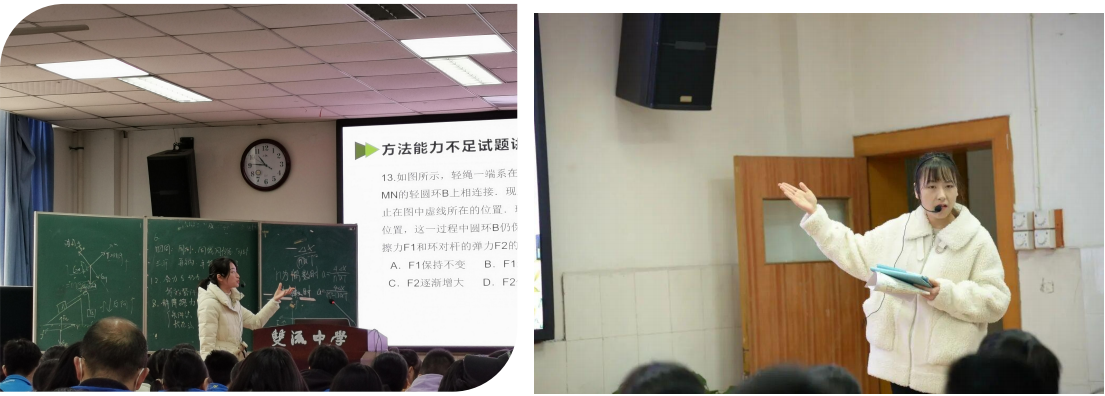 五位老师进行精心备课,在相同的课题背景下体现了不同的教学思路。在授课过程中,都尊重了学生学习主动性、积极调动着学生学习物理的兴趣,并合理利用信息技术、平板教学等,在习题课、新授课的碰撞中产生火花,展现了青年物理教师的风采。
