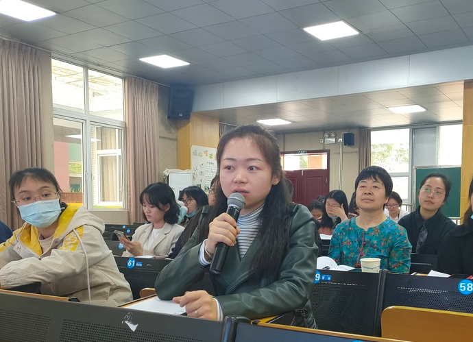 随后,双流区实验小学廖永琴老师做了题为《携“他”之手,“慢”步语文园地——针对低段听障学生的语文教学例谈》。廖老师首先聚焦“他”,明确“学”的主体,详细地为大家介绍了听障学生在感知觉、注意力、记忆、思维等方面的特点。然后通过普校聋校课标的对比,明晰“学什么”,再结合具体案例,分别给出了识字与写字、词语和阅读理解方面“怎么学”的教学建议。最后,廖老师以自己班上的一位听障孩子为例,跟大家分享了如何与孩子家长进行沟通,争取得到家长的最大化支持。