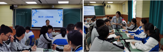 第二节李小青老师以社会生活中优生优育为情境,从“我想成为遗传咨询师”到“我是遗传咨询师”的学生活动为线索逐步推进,综合运用多种教育教学方法,课外活动小组的学生关于“高度近视的调查”展示环节是本节课最高潮之处,也是充分发挥学生主体作用的亮点之作。