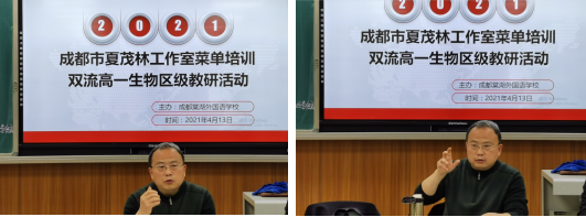 2021年4月13日上午,成都市夏茂林名师工作室2021年春季课程菜单培训活动暨双流区高一生物教研活动在成都棠湖外语学校顺利开展。活动由双流区高中生物教研员杜尚兵老师主持,特别邀请了四川省教科院高中生物教研员何兴明老师指导,双流区各校高一生物老师和棠外高中全体生物老师参与。