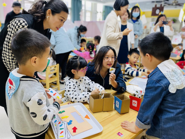 紧接着,与会人员参观了万科实验幼儿园墙面、桌面、地面的“三维”数学游戏。园内的数学走廊、数学户外和班级区角,体现了以游戏为载体,利用现代化的教学形式,创设有趣的教学情境,寓教于乐,让幼儿在操作中体验数学的有趣和有用。在此活动中,与会教师切身体会到各类数学游戏的有效开展,课题措施的扎实推进。