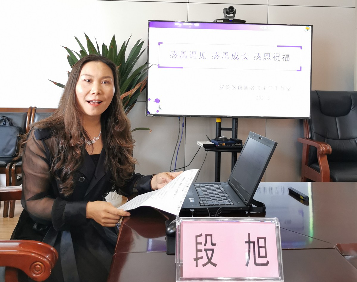 然后,双流区优秀工作室导师代表周晓玲、刘光文、段旭分别以《研学一体,互融共生》、《名师工作室建设的实践探索》、《感恩遇见,感恩成长,感恩祝福》为题,分享了本工作室高质量建设的宝贵经验。