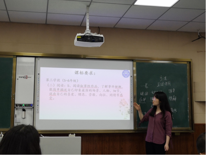紧接着,棠中实验校黄瑞秋老师对九年级小说情节教学方面的分解汇报。她从学生小学阶段的小说掌握情况说起,把七至九年级教材中出现的小说做梳理,并结合助读系统及单元提示做有针对性的分析。黄老师的分解全面、细致。