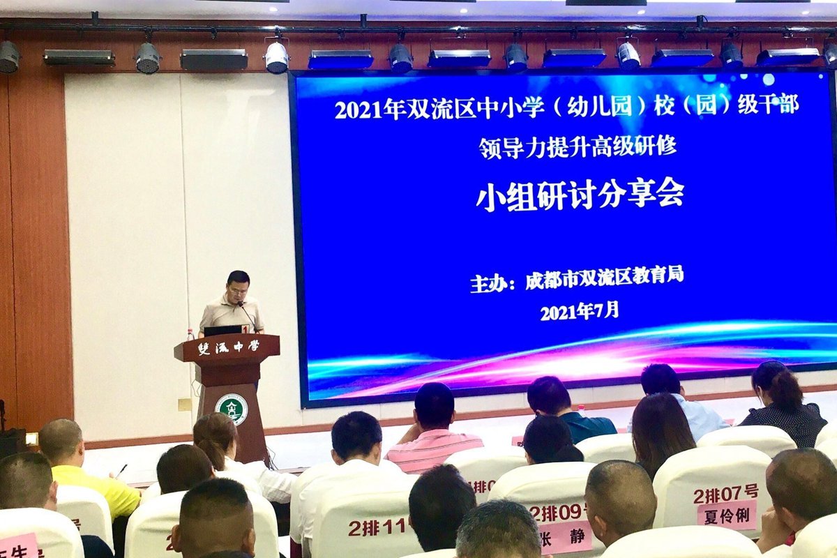 清凉夏日,拂面的清风阵阵而来。7月11日,2021年双流区中小学(幼儿园)校(园)级干部领导力提升高级研修班培训活动在双流中学继续进行。今天的培训活动由双流区教科院院长邱刚田主持。研修活动分为专题讲座和小组专题研讨两个部分,全区207名校(园)级干部参加了此次培训活动。