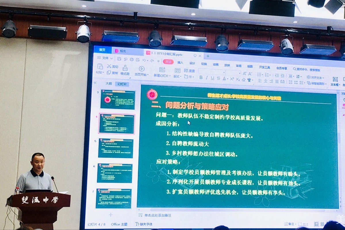 完职中组:黄超作《关于双流完职中高质量发展策略探讨》主题发言。他从全域内专业共享共建共提升、加大区域内学生生源管理、构建普职融通、推进完职中提档升级、加快学校信息化建设、促进育人方式转变五个方面分享了完(职)中研讨成果。