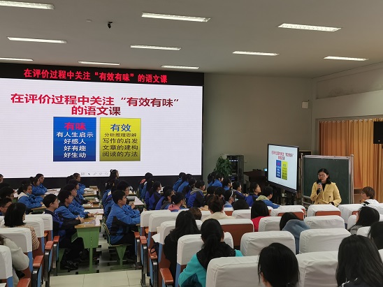 教研活动由第十届的两位初中语文学科带头人——棠湖中学实验学校的陶云丽老师和双流中学实验学校的何向老师承担,第一个环节是“在课堂评价过程中如何关注有效有味的语文课”,第二个环节是“在作业评价过程中如何关注有效有味的语文课”。