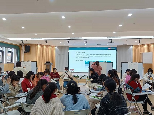 随后,易婷和唐娟老师分别对今天的活动进行了说课。两位老师从活动设计背景、目标、活动环节及反思向大家进行了介绍,帮助大家对今天的两个活动有了更清楚的了解。