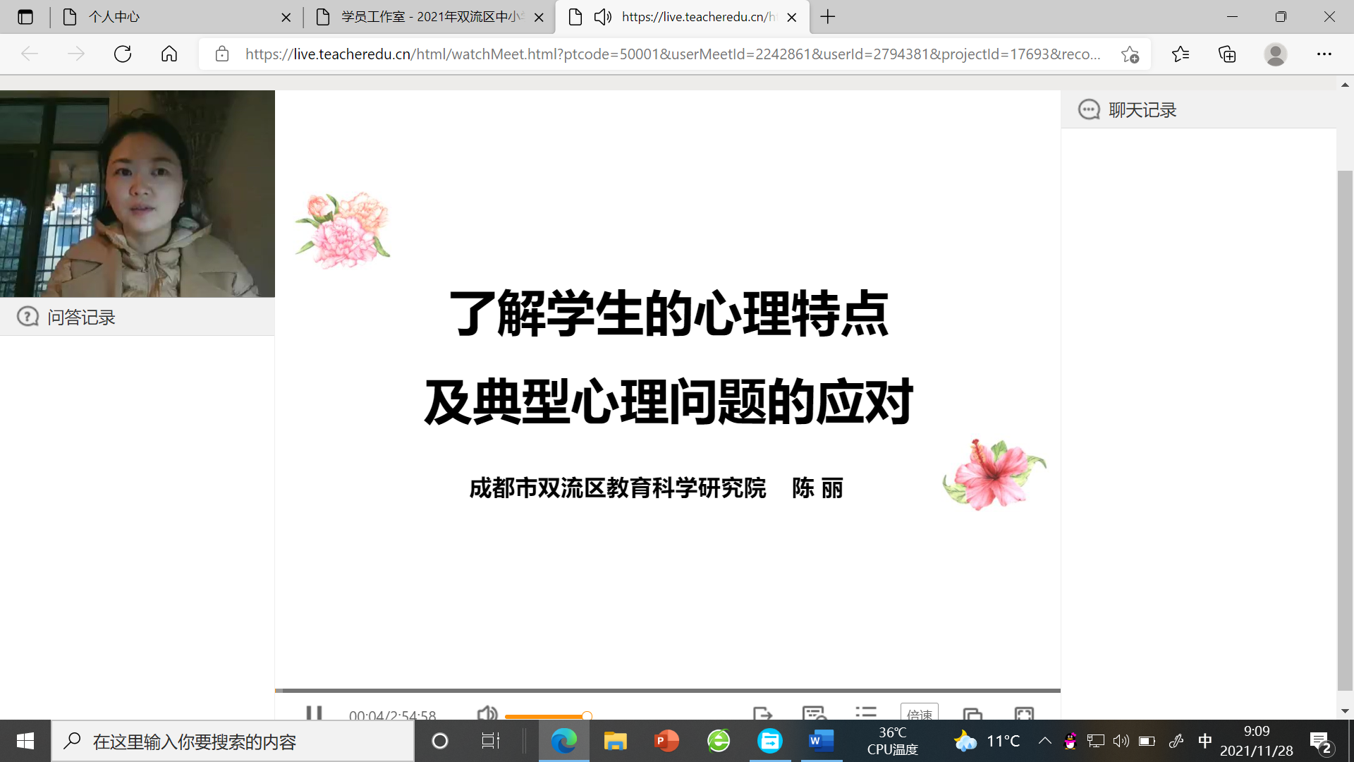 2021年11月27日,由双流区教育局主办,双流区教育科学研究院承办的2021年双流区新教师培训班第四次集中培训通过线上直播的方式顺利举行。