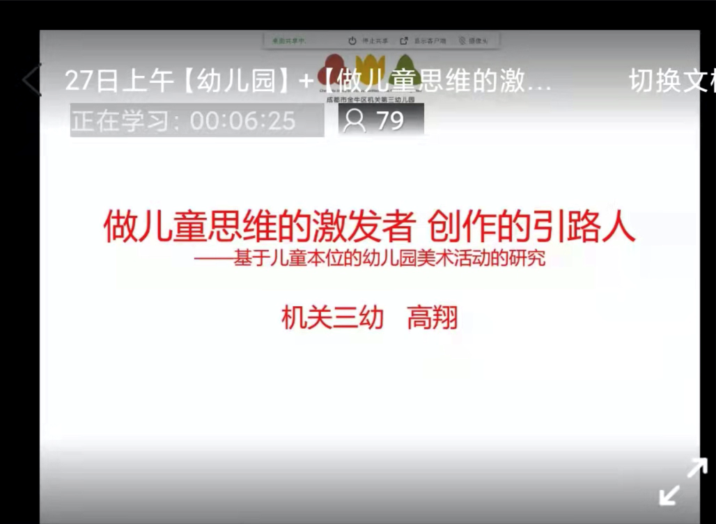 四川省学前兼职教研员、成都市金牛区机关第三幼儿园教育集团集团党支部书记、总园长高翔老师为学前教育段新老师们带来《做儿童思维的激发者创作的引路人——基于儿童本位的幼儿园美术活动》的专题讲座。高老师从三个方面进行讲述,一是对《指南》的艺术领域的理解,二是对美术及美术教育的在思考,三是幼儿园及美术教育的现状,四是我们的做法。她告诉老师们,写生画是帮助幼儿摆脱模仿,建立属于自己的绘画表达方式的基础。写生画的灵魂在于观察,只有细致的观察并掌握观察的方法,才能抓住事物的主要特征,表现出具有自己独特视角的作品。