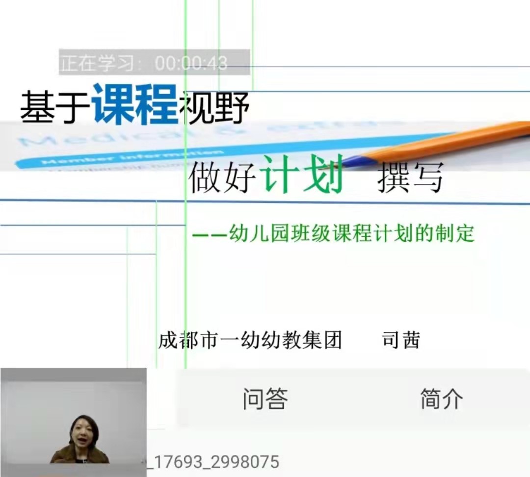 中小学高级教师、成都市学科带头人、成都市一幼教集团园长司茜老师为学前教育段老师们作了题为《基于课程视野做好计划撰写——幼儿园班级课程计划的制定》的专题讲座。司老师从计划是行动的前提,班级课程计划的根在哪里,班级课程计划质量是检验管理者课程领导力的最具化载体,班级课程计划质量是教师专业水平的最真实体现四个方面为大家进行讲解。她说,看似最基础的班级课程计划,却无声地表达了一所园的课程理念、特色、教学管理能力和常态教学质量。