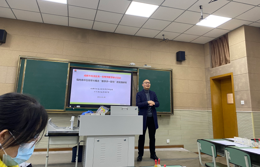 2021年11月30日,双流区“指向大概念的教学评一致性的实践研究”教研活动在棠湖中学新校区举行,参加此次会议的有双流区教育科学研究院中学室副主任、生物学教研员杜尚兵老师和双流区高一年级全体生物学老师。
