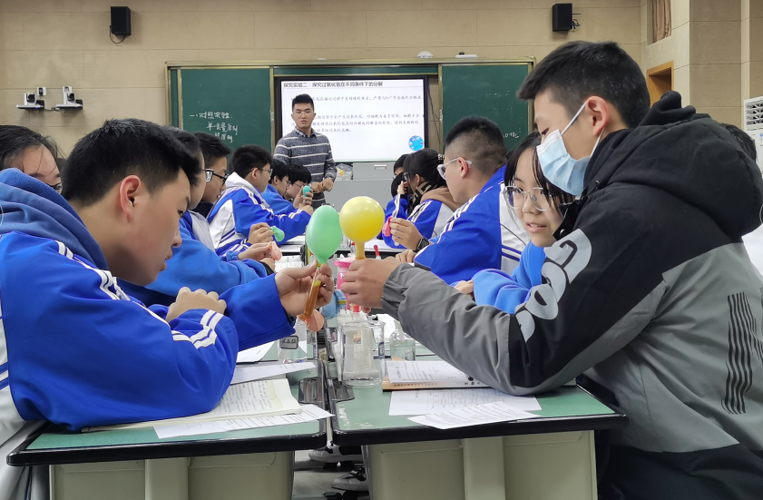接下来是由棠湖中学高一年级生物教师谢庆余老师执教一节《酶的作用》研究课。谢老师通过三个活动层层递进,进行探究,完成概念教学。活动一:探究温度对过氧化氢分解的影响,小组合作设计探究实验,归纳出对照实验的原则,完成实验,总结结论。活动二:探究催化剂对过氧化氢分解的影响,巩固设计科学探究实验的方法,并在实验结束后,组织学生针对实验设计和操作进行小组自评和互评,实现课中评价。活动三: “跳皮筋”活动,类比推理催化剂加速化学反应的原理,并通过数学模型表征酶的作用机理。最后以酶与细胞代谢的关系为探讨主题,深化课堂,认同“正是酶的催化,细胞代谢才能快速进行”的事实。最后“尝试提出治疗硅肺的新方案”的开放性问题结尾,渗透社会责任。
