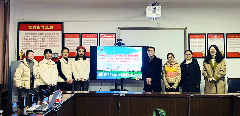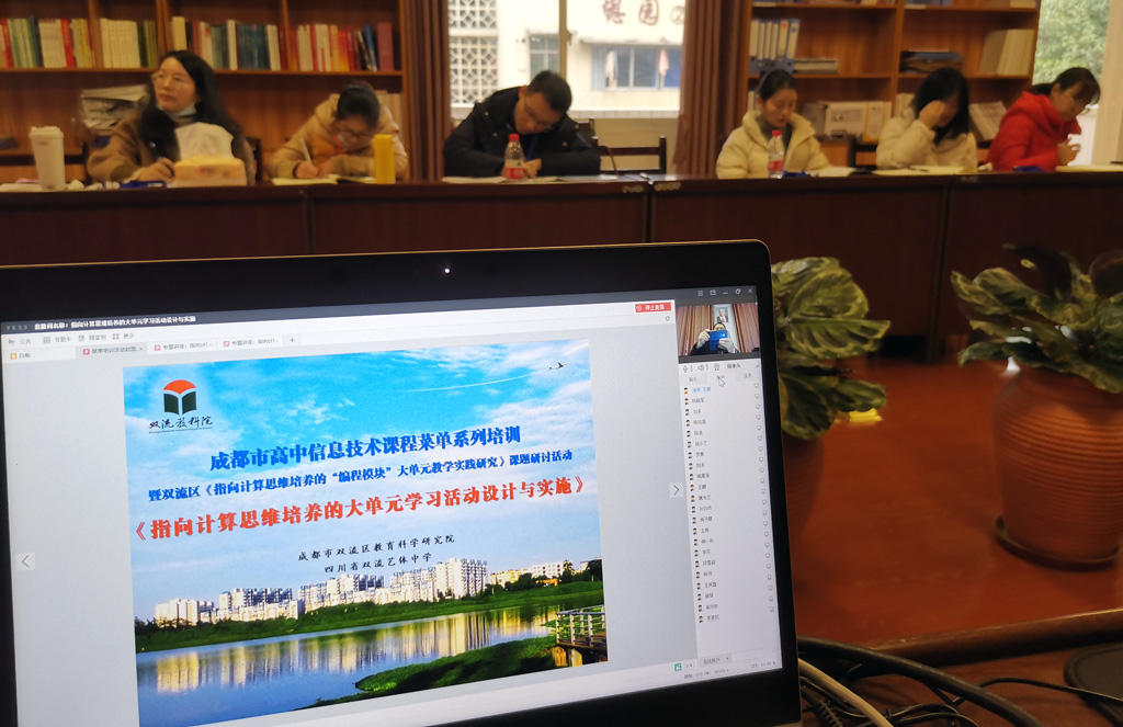 为积极实践高中信息技术新教材教学,探索指向计算思维培养的编程模块大单元课堂教学,推动区域课题《指向计算思维培养的编程模块大单元教学实践研究》开展,2021年11月26日,成都市高中信息技术课程菜单系列培训暨双流区课题研讨活动在双流艺体中学顺利举行。本次活动聚焦“指向计算思维培养的大单元学习活动设计与实施”主题,采取线下与线上相结合方式,双流区部分小初高信息技术学科教师、区域课题组教师参与线下活动,成都市其他学校教师则通过中小学继续教育网的直播平台参与线上培训。