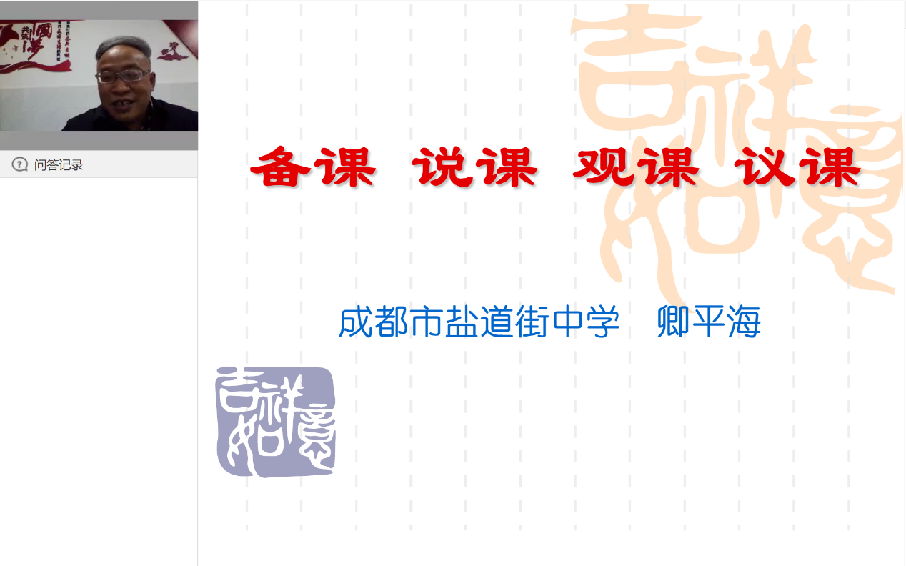 上午9:00,成都市盐道街中学副校长,四川省特级教师,四川省优秀教师,四川省基础教育课程改革先进个人,全国优秀语文教师卿平海老师为大家进行了《备课、说课、观课、议课》的专题讲座。卿老师认为,目前备课、说课、观课、议课中的突出问题主要表现为备课中教材解读的精深度、学情把握的精准度、教学设计的精美度,说课中复述上课或设计,以及观课议课观点杂乱、分歧点难有、专业性不强等三个方面,并针对性以案例的形式为大家一一作了解答。对于课堂的评价,卿老师指出应从学生的乐学善学、教师是否尊重学生个性、注重差异发展,教学是否将学科教学与信息技术完美、有机的整合三个方面出发。这也是我们基础教育课程改革纲要关于教学过程的相关要求。
