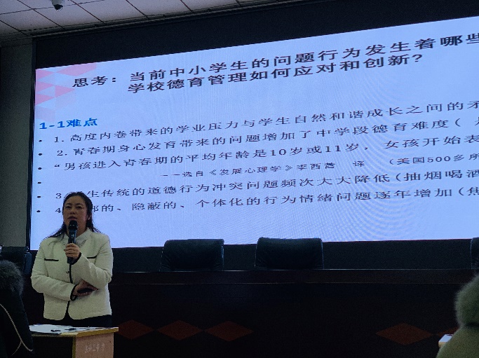 美丽优雅的赵老师从家校共育的时代背景、国家管理体系及有效探索这三方面,层层展开,娓娓道来,既有前沿理论,又生动地结合了身边实际。与会老师在赵老师由浅入深的讲述中,真切而深刻地认识到新时代背景下家校共育的紧迫性、重要性。同时,赵老师围绕家委会的组建与管理等实操案例,让老师们认识到充分发挥家委会的作用对家校共育具有重要的意义价值。此外,赵老师基于多年临床经验,借助诸多真实案例,让老师们真切体会到家庭对学生成长的影响,更充分地意识到在培育学生的过程中家校合作的重要性和必要性。最后,赵老师叮嘱与会老师,班主任工作任重而道远,你我的每一个不经意间的言行举动都可能对孩子产生深远的影响。上午的培训活动,在赵老师的殷殷期盼、老师们的热烈掌声中画上圆满的句号。