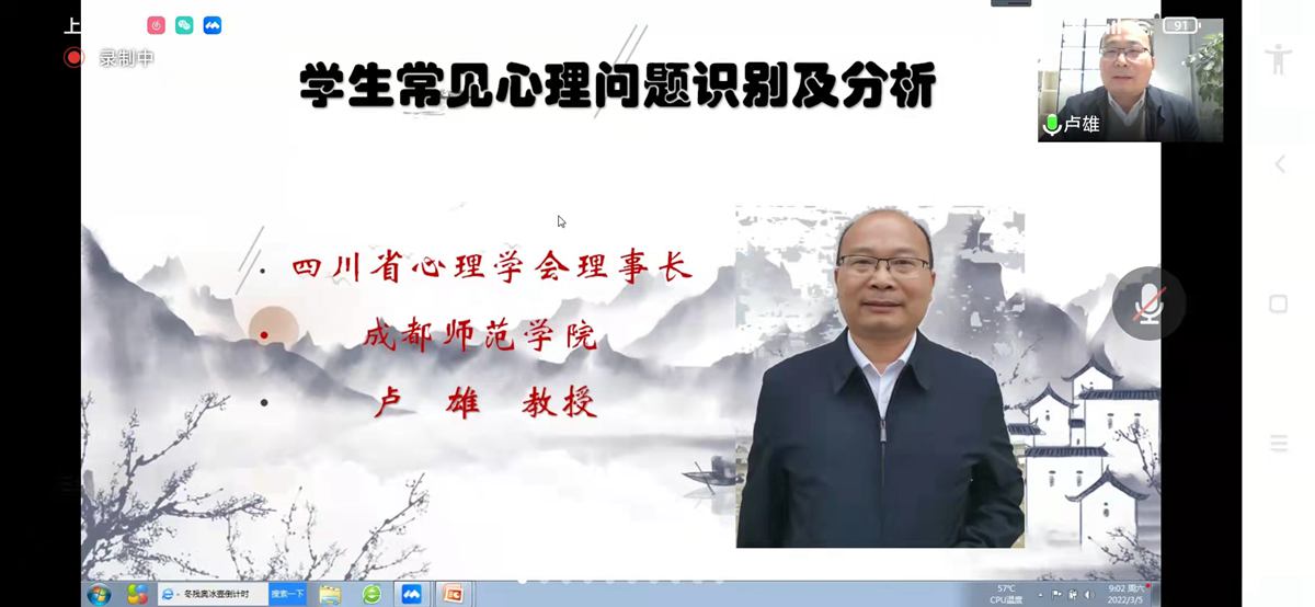 阳春三月,春暖花开,到处洋溢着宜人的芬芳,疫情也不能阻挡咱们双流班主任们对学生工作的研究探讨,对能力提升的渴望。2022年3月5日上午,由成都市双流区教育科学研究院主办的第五次双流区初中班主任能力提升活动,在千呼万唤中迎来了第五次课程。老师们齐聚线上课堂,展开了第一次网络视频活动。本次活动围绕着“学生常见心理问题识别及分析”和“校园安全事件应对”两个主题展开,两场讲座都意义非凡,精彩纷呈。