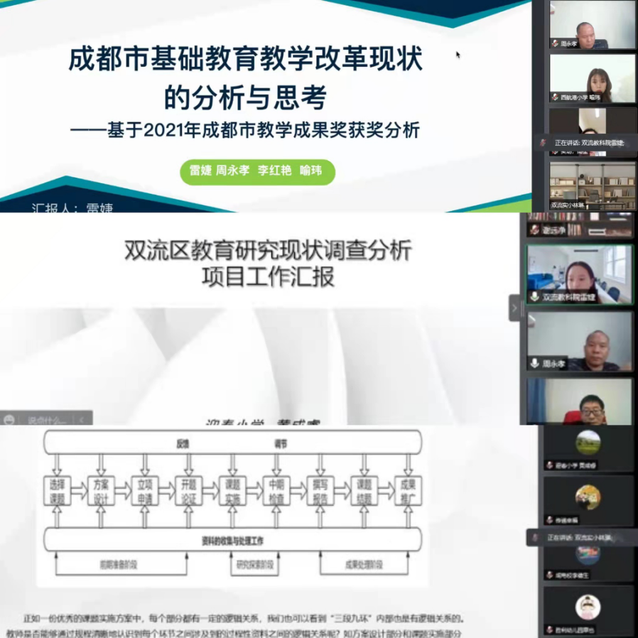 3月15日上午九点,双流区教育科研中心组成员14人参与了本次会议,会议由双流区教科院教育改革研究中心雷婕老师主持,会议采用腾讯会议线上召开的方式进行。
