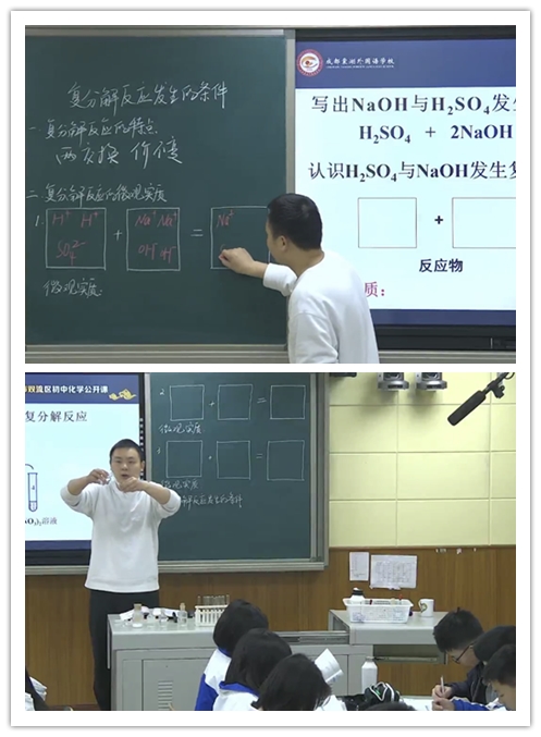 本次活动分为两个部分:第一部分为《复分解反应发生的条件》同课异构课例展示,由西航港二中的张梅老师和成都棠湖外国语学校的羊粒恒老师提前录制课堂实录。