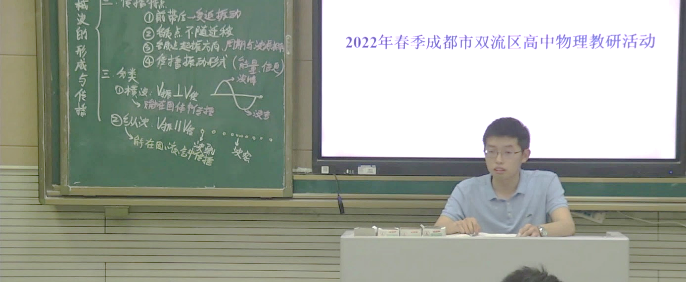 本次会议首先观摩了一堂由棠湖中学教师邓灏执教的示范课《机械波的形成与传播》。邓老师首先通过生活中常见的声波、水波等现象,让学生了解机械波在日常生活普遍存在,紧接着邓老师设计了多个课堂实验,让学生认识机械波是如何形成的。通过小组实验,学生的学习积极性被充分调动了起来,学生的自主探究的能力被极大地激发了出来,学生的主题地位也得到充分体现。通过一系列学生的探究活动,以及邓老师的层层设问引导,师生共同总结出了机械波形成的条件以及机械波传播的特点等本节课的重点知识内容。在邓灏老师的课堂设计和精心引领下,同学们在认真学习物理规律的同时,培养了科学的思维。邓老师的课堂逻辑严谨,教学设计环环相扣,使同学们收获颇丰。