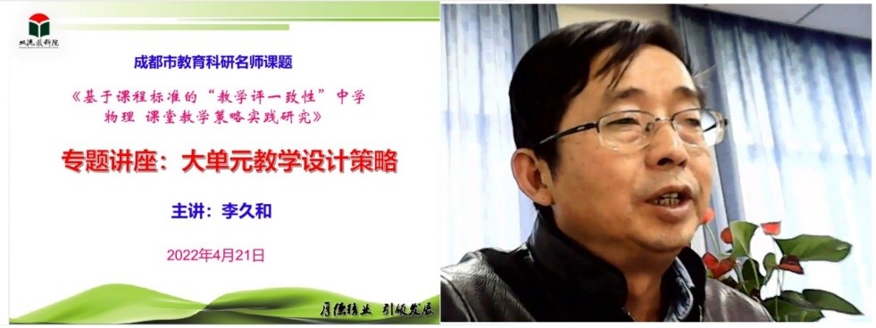 2022年4月21日下午,四川省特级教师、双流区教育科学研究院书记李久和老师领衔的课题《基于课程标准的“教学评一致性”物理课堂教学策略研究》专题研讨会暨双流区高中物理研培活动在棠湖中学隆重召开。