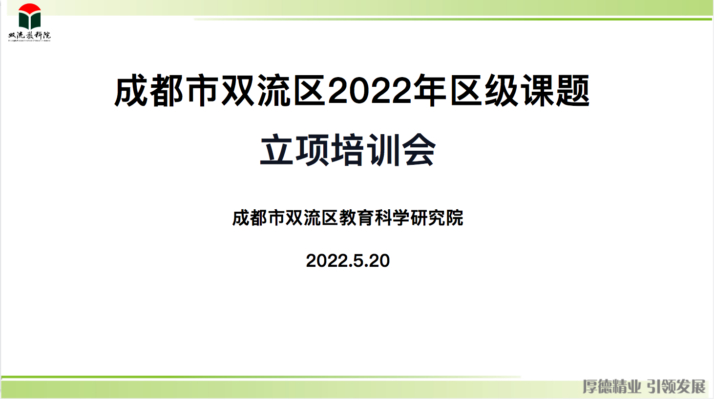 教育科研工作是推动学校教育发展的原动力,是深化教育改革的重要路径。为进一步规范区级课题的开题论证工作,提高开题论证会和课题研究质量,推动区域教育科研工作有效开展,2022年5月20日上午,双流区2022年教育科研课题立项培训会顺利召开。