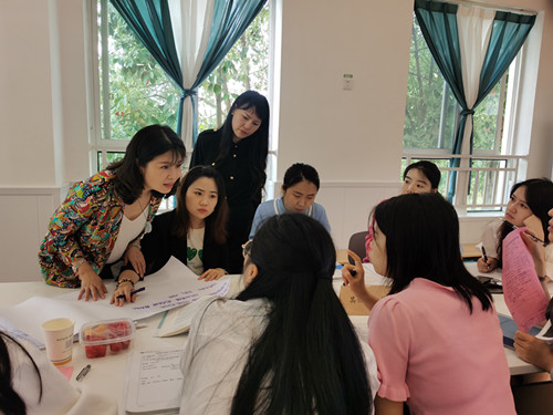 接下来,导师叶美蓉针对游戏的本质和建构游戏与课程的关系提出教师要明确游戏中自己的定位,分析孩子的现有发展水平以及教师在评价中的引导和支持,并用游戏中教师的引导行为引发学员们的思考。同时,也对本次研讨活动给予高度的赞扬,肯定学员老师们学习意识在增强、实践能力在提升、质疑精神在提高。最后,研陪中心高永琼老师对本次名园长工作室送交下乡活动进行了点评,充分肯定了本次送教活动是“基于真需求,发现真问题,开展真研究、取得真效果”的教研。