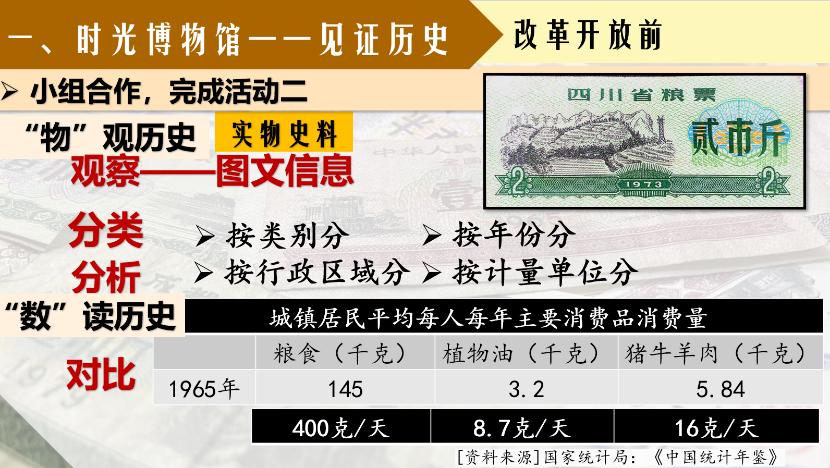 《岁月流动,沧桑巨变》,周老师以此为题,带领同学们走进“时光博物馆”,观察身边的事物,发现生活中的“变”,感知岁月的变迁。感受不同时代衣、食、住、行等方方面面的变化与发展。