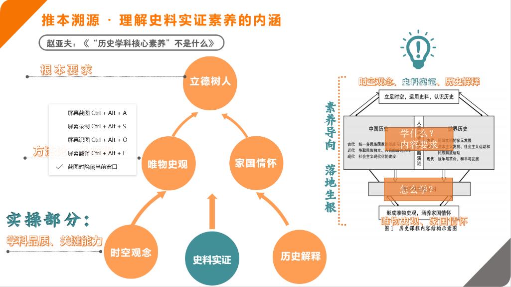 最后,张老师对本次活动进行总结,她指出“史料实证”就是运用史料探究推理、重现历史真实并严密论证的过程。首先,这一过程的养成不是一蹴而就的,是循序渐进的,首先培养的是学生在历史学习与研究中必须具备的意识与态度,在此基础上培养学生通过一系列区分、搜集、辨析、判断、提取的行为,掌握如何依靠有力的证据,来建构自己对历史的解释与认识的方法。其次,这个过程也不是孤立存在的,五大素养的养成是相辅相成,相依相生的,需要学生在唯物史观的指导思想之下,将认识的对象置于具体的时空条件下进行考察,进而培养在形成历史理解和认识的基础上叙述历史的能力,最终内化为学生在终生学习与发展过程中的精神与品格,以落实历史学科立德树人的根本任务。最后,“史料实证”素养是历史学科的实证意识、实证思维、学科精神,但在教学中究竟应当如何外显的进行评价,似乎还需要进一步探讨。