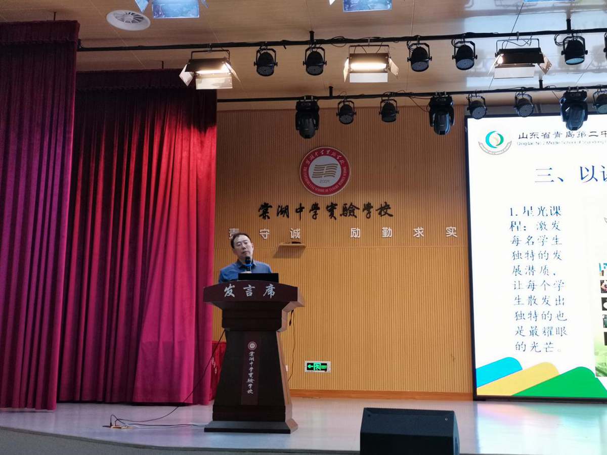 下午,山东省青岛第二中学校长孙先亮作《建设丰富课程体系 促进学生个性发展》专题讲座。孙校长的讲座让我们体验到青岛二中的“星光课程”,该课程体系包含科学研究类、工程技术类、参与体验类、艺术类课程等。让我们感受到学校通过构建高端创新实验室平台、开展学术素养提升计划、支持学生参加高端创新比赛等途径激发每名学生独特的发展潜质,让每个学生散发出独特的也是最耀眼的光芒。