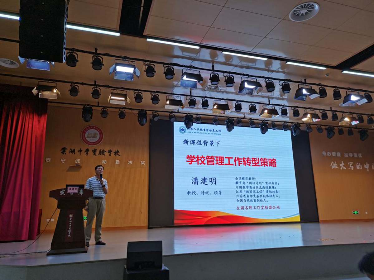 全国模范教师、全国推进素质教育先进工作者、正高级教师潘建明教授作《学校管理工作转型策略》专题讲座。潘教授首先分享了“常州自觉教育联盟”的改革经验,随后从聚焦课程改革、构建“目标导向”的育人价值体系、构建“责任导向”的双向赋能体系、构建“发展一致”的学段贯通体系等方面分享了他的经验。最后,潘教授将“自觉教育心语”赠与全体学员,期望大家在“互联网+”新时代保持定力和思想。