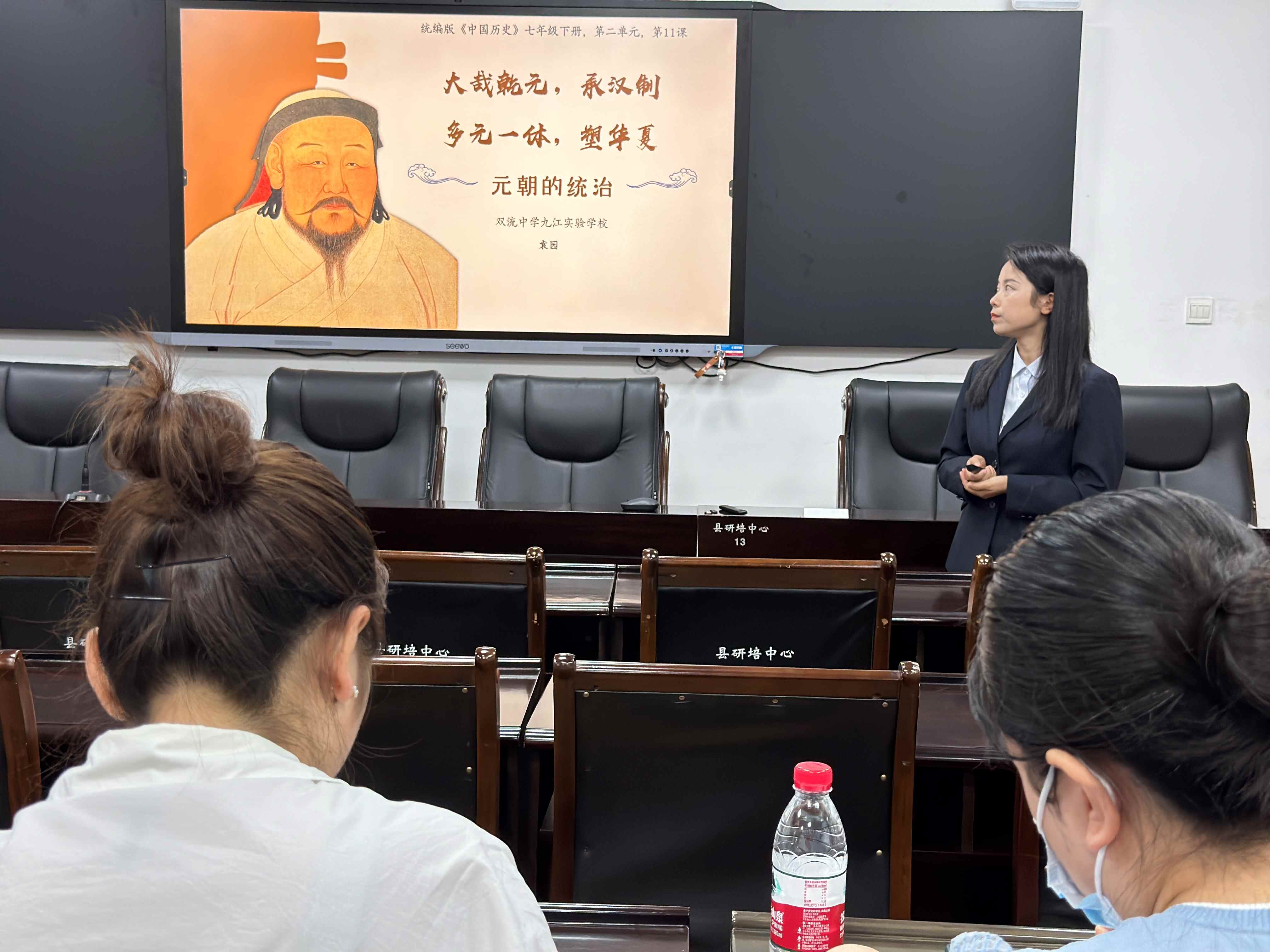 第二位出场的老师是来自双流中学九江实验学校的历史老师袁园。袁园老师以《大哉乾元,承汉制;多元一体,塑华夏》为题,针对台湾网民“满蒙非中国,元清非中国”的荒谬言论,梳理元朝的国家治理方式、民族交融的史实,以元朝对中国统一多民族国家巩和发展的意义进行了有力反驳。