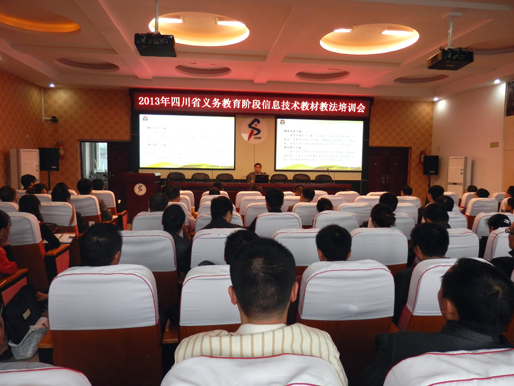 2013年10月27-31日,由四川省教育科学研究所主办的四川省义务教育阶段信息技术教材教法培训在宜宾隆重举行。来自省内各市州、区县的教研员及信息技术骨干教师400余人全程参与了此次培训活动。