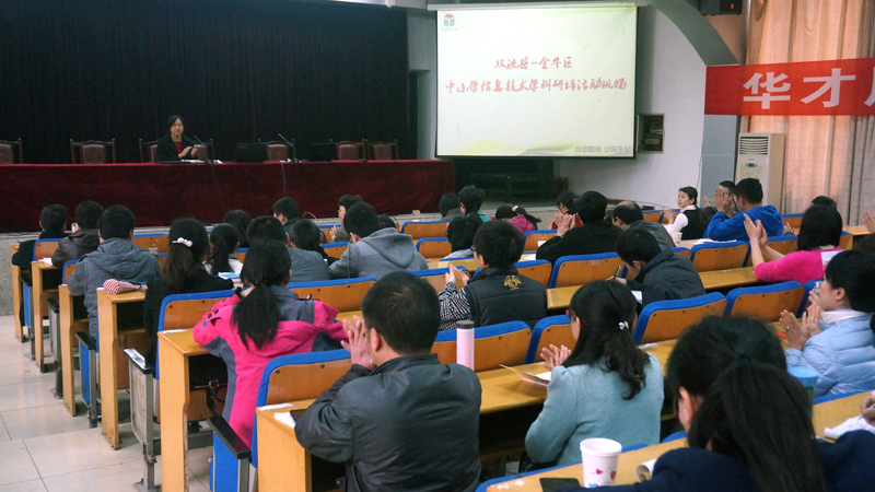 担当本次活动主持的是来自双流中学的邓莎莎老师。活动分为上、下午两个阶段。上午的活动在学术演讲厅开展,全体教师齐聚一堂,共同聆听三位老师的专题讲座并进行了探讨交流;下午的活动在科技楼三楼计算机教室分学段进行。