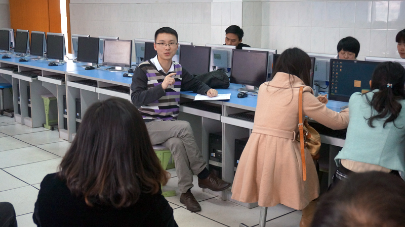 下午一点,分学段专题交流活动在科技楼三楼计算机教室准时开始。