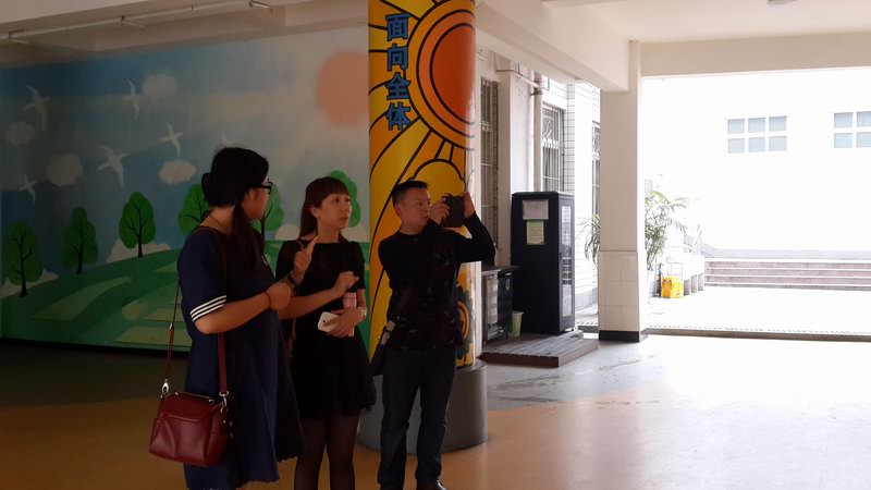 位于重庆北碚闹市区的朝阳小学,是一所先有校名再有地名的学校。沿着陡峭的阶梯拾级而上,刚劲、醒目的大字“朝阳小学”屹立在教学楼上,向我们诉说着学校厚重和悠久的发展进程。走进校园,一面充满温馨的笑脸墙迎面而立,一张张灿烂而天真的笑脸流露出幸福与骄傲,也仿佛是在欢迎每一个到校参观的客人。在陈校长的带领下,大家领略了朝阳小学的教师图书室,教学功能室,以及每层楼的独特的设计风格和理念,大到学校的文化诠释,小到楼梯拐角处的细小的设计元素。在参观过程中,大家都被朝阳小学美丽整洁的校园和极富文化内涵的校园风貌深深吸引着,老师们或拍照留念,或交流询问,或驻足欣赏。在陈校长满富激情的介绍中,我们深深感受到其由内而外的骄傲之情:我是朝阳人,我骄傲!一所让教师引以为荣的学校一定是一所阳光的学校。“公平”是学校“阳光文化”的最集中体现,学生的公平实现学生自主成长,教师的公平达成教师的自我实现,学校的公平促进教育均衡发展。学校在“阳光文化”下的“精神文化”、“制度文化”、“物质文化”、“行为文化”无不体现在学校的墙壁上、地板上、窗帘上,更体现在孩子们的行为上。陈校长充满信心地告诉大家:朝阳小学是老师们成长的摇篮,学校会在不断扩大办学规模的基础上,让教师专业成长得到更加有力的保障,正如学校的办学理念一样,“永远朝着太阳前进”!