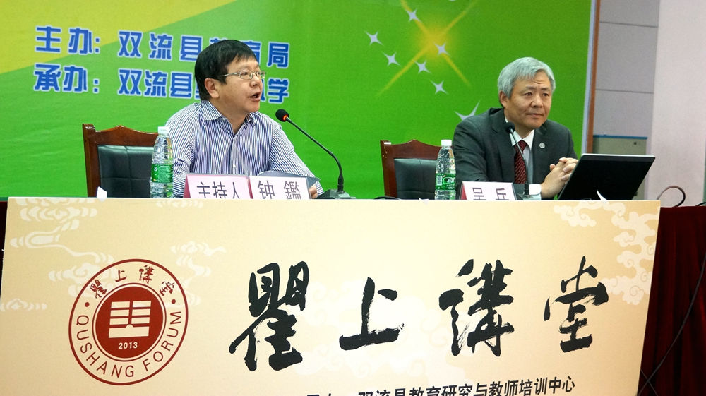 4月22日上午,双流县教育局主办的“瞿上讲堂”第八讲在棠湖小学举行。这次的主讲嘉宾是爱尔兰都柏林工业大学校长助理、国际合作联络部主任吴兵教授。全县中小学英语教师和其他学科骨干教师、各级各类学校分管教育国际化的副校长、教务主任高级研修班学员、名教师工作室导师及学员、县研培中心研培员共500余人到会聆听了讲座。讲座由县教育局党组副书记、党委书记钟鑑同志主持。