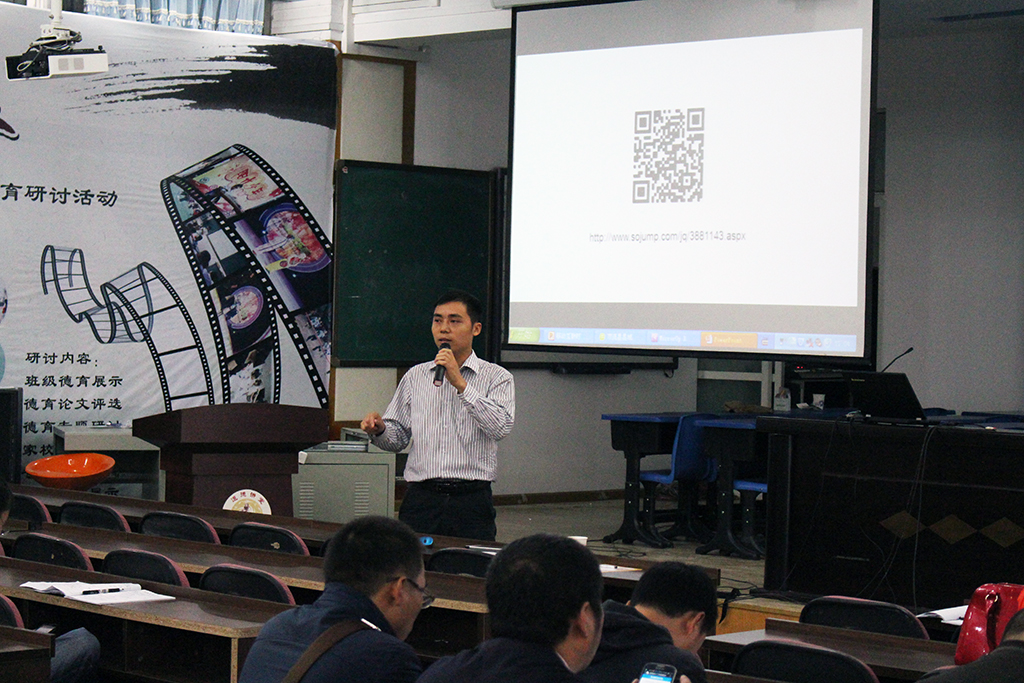接下来,双流县研培中心教研员王鹏老师针对当下热门的移动互联技术,结合信息技术学科教学,给大家带来“移动互联时代的教与学”专题讲座。开讲前,他首先让老师们通过二维码扫描填写调查问卷,很多老师感觉这种调查方式颇为新颖,接着王老师又运用“大数据原理”现场分析调查数据,结合本次讲座主题,充分展示了移动互联时代的快捷性与高效性。根据老师们平时生活和工作中的需求,王老师也例举出很多应用于教学的移动互联新技术,并加以生动的案例说明,台下很多老师也纷纷利用移动电子设备拍照记录讲座内容。在大家看来,这是一次启发性很强、收获颇丰的专题讲座。