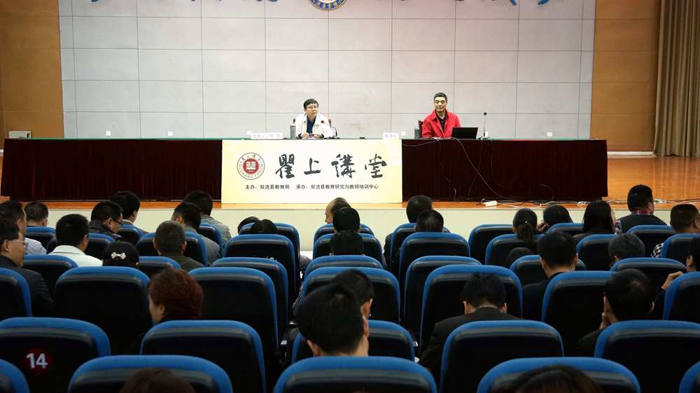 2014年10月15日上午9点,双流县“瞿上讲堂”第十次讲座在棠湖小学多功能厅顺利举行。教育学博士、华南师范大学教育信息技术学院副院长、教授、博士生导师、未来教育研究中心副主任、广东教育学会网络教育专业委员会副理事长焦建利为大家带来了题为《微课与颠倒课堂》的精彩讲座。双流县教育局党组书记、局长刘伟,县教育局和直属单位负责人及工作人员,双流县学校校长、分管教学副校长或中层干部,双流县名教师工作室导师及学员,2014年双流县新教师培训班全体学员,青白江教师代表共计500多人聆听了讲座。双流县教育局党组副书记、党委书记钟鑑主持了会议。