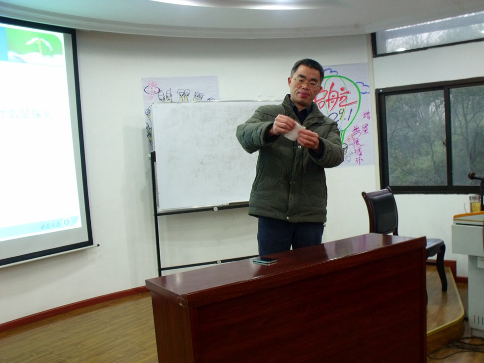 迎接我们的是一位严谨的学者是西南大学教育学部博士生导师徐学福教授。他用生动的案列和幽默风趣的语言,为带来了《探究教学的理念与策略》的专题讲座。使我们知道所谓的探究教学是指学生在教师的指导下,为获得学科素养以类似专业探究的方式而开展的一种学习活动(通过解决问题进行的学习)。探究教学的基本理念必须面向全体学生、面向真实的学科、面向生活世界。并且还给我们一线的老师提供了有模式可遵循的探究教学的策略。在徐教授丰富的各科案例引领下,学员们渐渐对探究教学有了全新的认识,激发了学员们的思考。