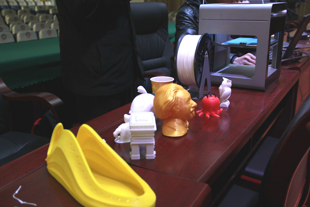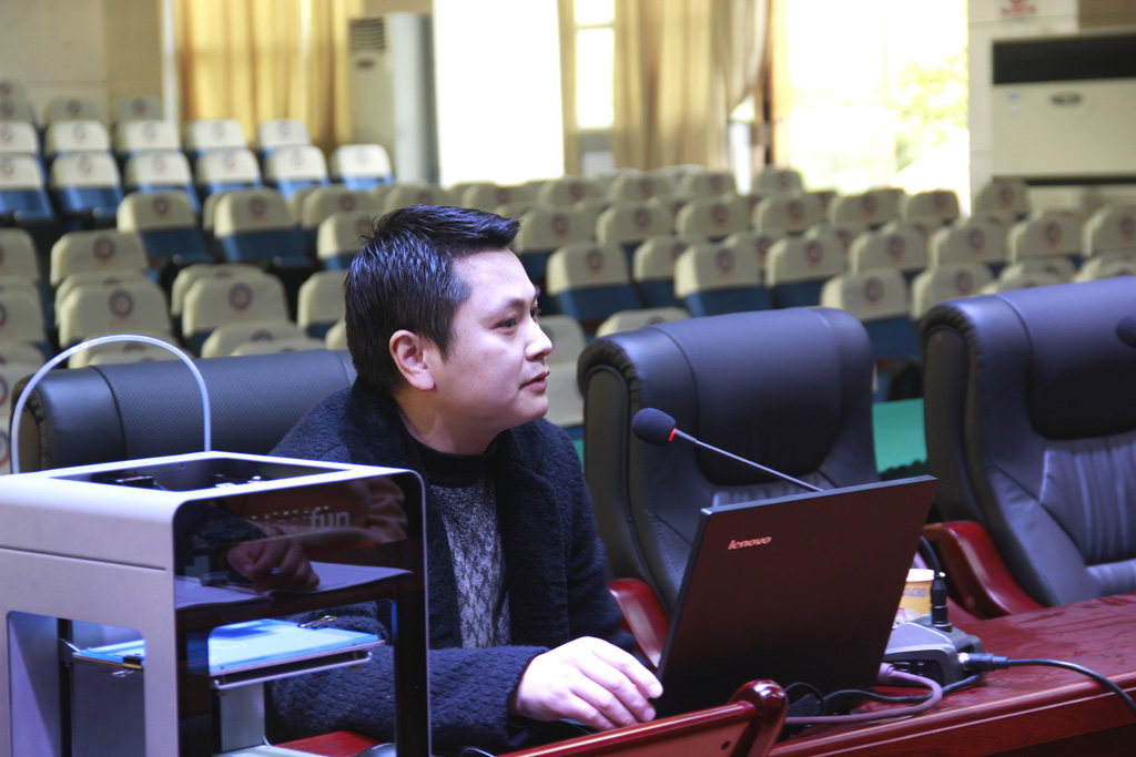 陈吕洲,曾经的双流学子,现任墨之舫科技有限公司的总工程师,首先为大家带来技术前沿讲座——“3D打印展示与介绍”。会场上,在介绍了3D打印机的原理、技术实现后,他以范例出发,从虚拟设计、打印设置、实物打印等多个环节详细讲解了3D打印机的使用及发展前景;与会老师们面对一件件打印出的实物,积极发言,与陈总进行了面对面的热烈交流。