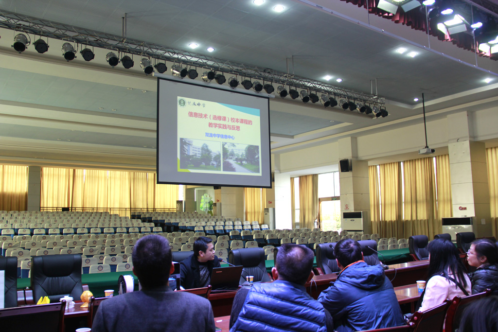 (双流中学教研组长龙江华老师作“信息技术校本课程的教学实践与反思”专题讲座)