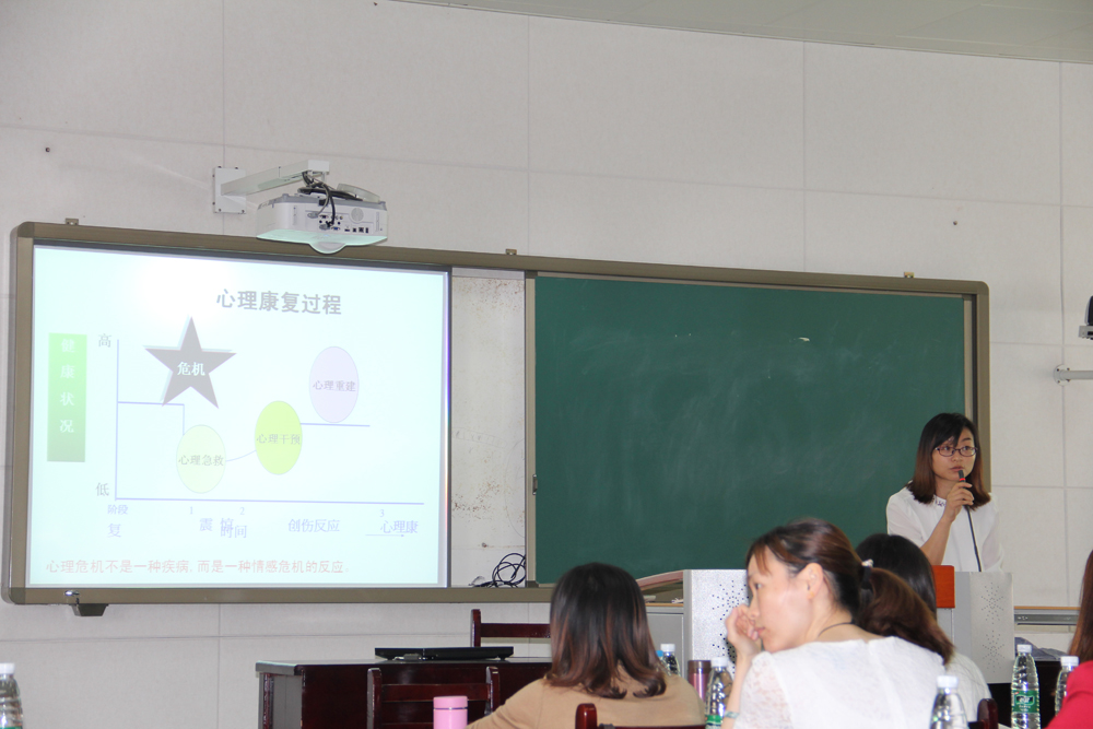 为贯彻落实《中小学心理健康教育指导纲要(2012年)》精神,有效预防和及时干预校园中突发心理危机事件,维护学生身心健康,维护学校稳定,促进各中小学校专兼职心理健康教育教师了解校园心理危机干预的重要性,树立危机干预意识,初步掌握校园心理危机干预的技术方法。2015年4月3日上午,双流县心理健康教育“危机干预”专题研培活动在艺体中学举行,双流县各中小学的专、兼职心理教师参加了本次活动。