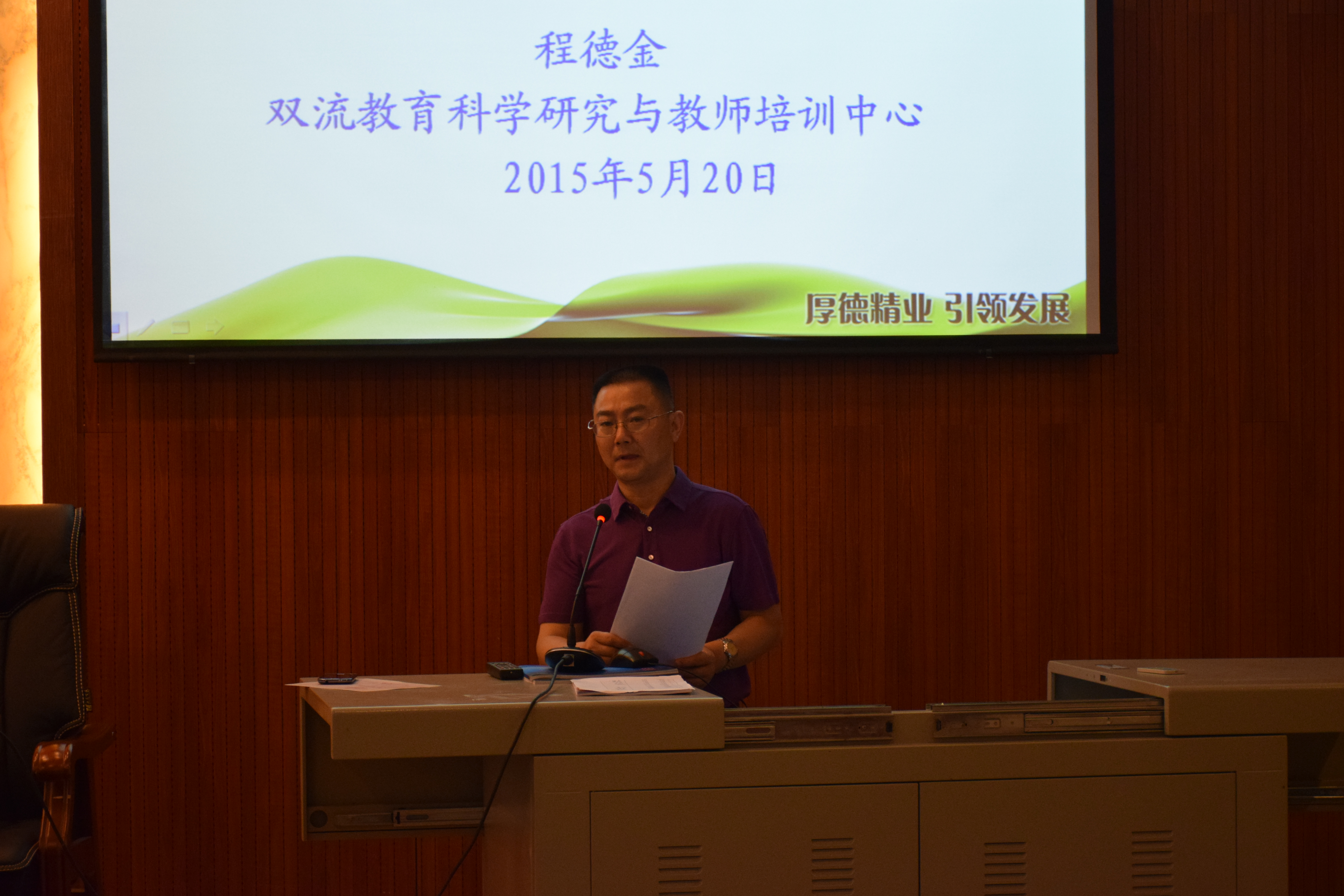 2015年5月20日,双流县研培员程德金工作室在棠外一阶进行了首次学术活动。工作室导师程德金作题为《以学习为中心的课堂观察讲座》的讲座。工作室全体学员以及棠外初中部全体英语教师参加学习。