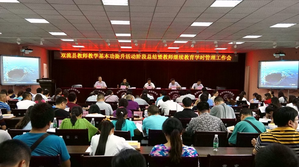 6月29日下午2点半,2015年双流县教师教学基本功提升活动阶段总结暨教师继续教育学时管理工作会在棠湖中学实验学校隆重召开。双流县教育局党组成员、副局长傅云昌,双流县研培中心主任邱刚田出席了会议。全县各学校(含民办)分管教师培训工作副校长,各学校(含民办)教师继续教育学时登记管理员,2014年双流县教师教学基本功提升活动之教学设计、课堂教学全员远程培训辅导员共两百余人参加了会议。本次会议由县研培中心副主任谢祖福主持。