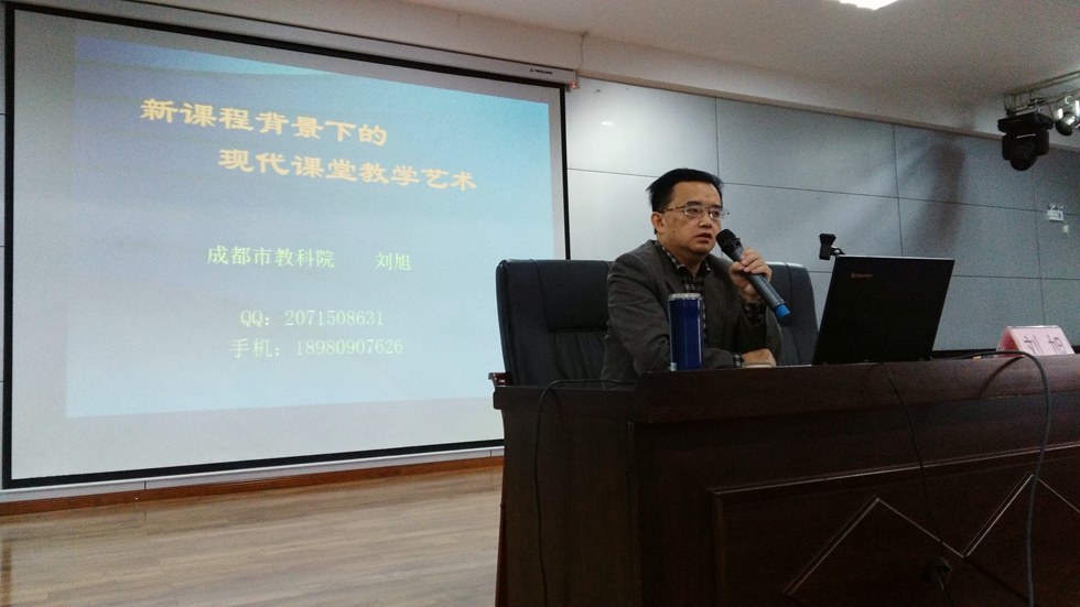 上午9点,刘旭老师以《新课程背景下的现代课堂教学艺术》为题,从课堂教学方法中存在的问题和新课程理念下的现代课堂教学艺术两个方面同大家分享了他的观点。他从教学引入、学生主体作用发挥、教学情景创设、课堂矛盾处理、利用教学资源、讨论学习、思维能力培养等方面深入地分析了当前课堂教学中存在的问题。并从引入、高潮、情境、主体、点拨、讨论、幽默、矛盾、资源等方面深入探讨了现在课堂教学艺术。刘老师的讲座深入浅出,生动形象,赢得了学员的阵阵掌声。