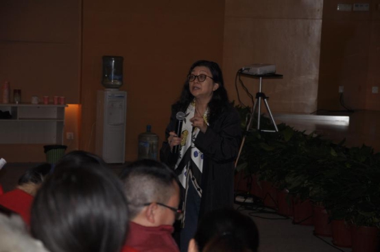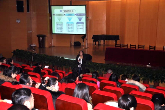 12月28日的培训活动由四川省特级教师,教育部艺术教育委员会委员,音乐课标研发组成员,原四川省音乐教研员曹安玉老师主讲。28日上午,曹老师做了《音乐课堂教学模式》的专题讲座。曹老师从音乐课堂教学的导入、新课教学、拓展延伸等几个方面以课堂教学案列为基础进行了深入浅出的分析讲解。12月29日的培训活动由东北师范大学的博士生导师,教育部艺术教育委员会委员,音乐课标研发组成员尹爱青教授主讲。29日上午,尹教授做了《音乐教育质量监测工具开发研究》的报告。尹教授不仅把当今音乐教育最前沿的音乐课堂教学质量监测工具教给了我县的音乐教师,她还以《音乐教育质量监测工具研究》这一课题为列向学员传授了教师如何进行课题研究。