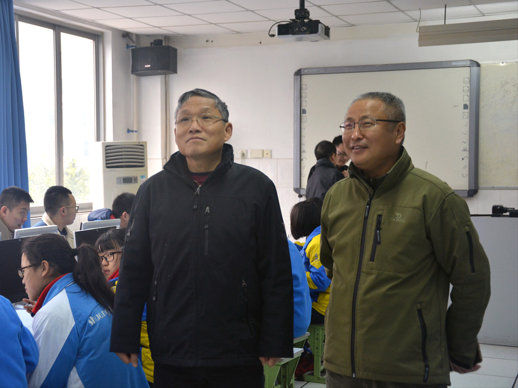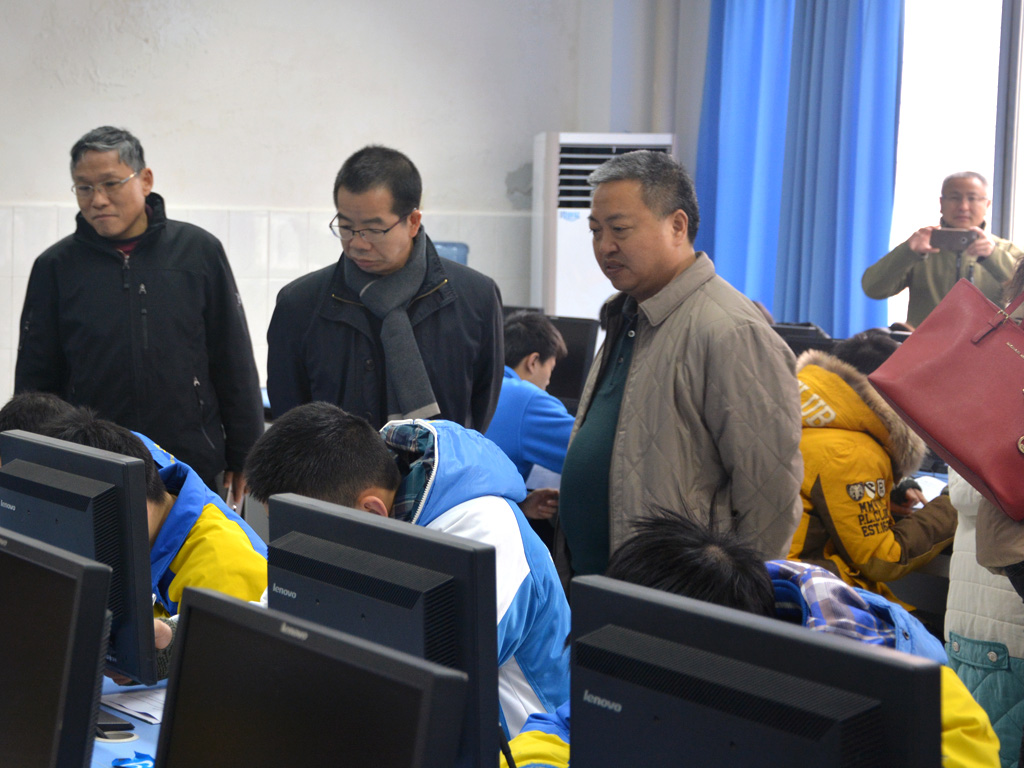2016年1月8日,教育部全国信息技术课程标准修订组专家一行在四川省教科所李维明主任的陪同下莅临双流开展了基于学科核心素养水平的专项调研与测试工作。来自北京师范大学的黄荣怀院长、东北师范大学的解月光教授、北京航空航天大学的熊璋教授、河北大学的肖广德博士等专家一行走进双流中学,分别从校长、教师、学生三个层次全面而细致地作了相关询问及现场测试工作。