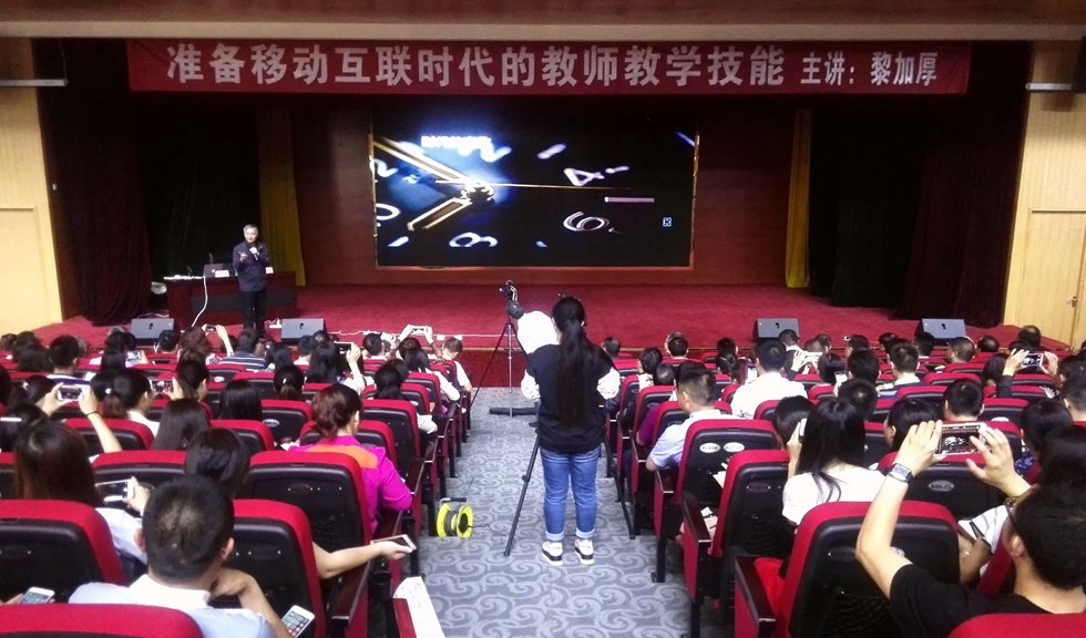 黎加厚教授的讲座精彩纷呈,高潮迭出,既带来了“互联网+教育”的先进理念,又带来了先进、实用的现代教育技术。在场的听众经历了一场头脑的风暴,更享受了一场思想的盛宴。相信参会者定会把今天的所学所思积极地运用到教育教学实践中去,不断提高新技术的运用能力,打造高效互动的课堂,享受现代化的幸福教育人生。
