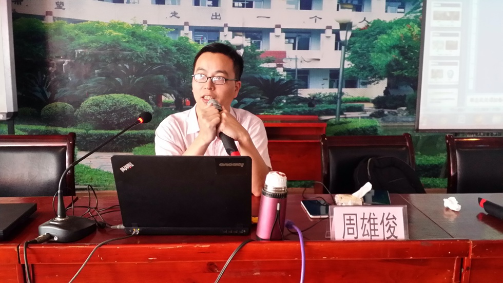 上午,四川师范大学教育技术学院教授周雄俊为大家带来了题为《互联网+时代的学校教育》的讲座。周雄俊教授在讲座一开始就为大家演示了如何用手机操控课件,在课件上勾划重点、移动光标和上传现场照片等都可以通过手机操作来实现。“如何实现既有效率又有个性的学校教育?”在信息社会当中,这一目标的实现需要教师有主动运用新教学工具的意识,需要教师有搜集整合资源的能力,更需要教师拥有互联网+的思维。周雄俊教授推荐了许多实用的教学软件,提供了多个可供下载教学资源的网址,更为新教师们提供了将“互联网+”应用于教学的新思路。